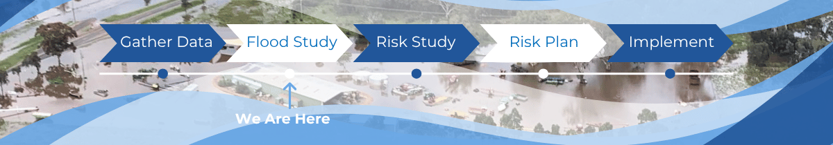 Flood studies are part of a five-stage process used by Councils across NSW to reduce flood risk. Right now, we’re in Stage 2: Flood Study.